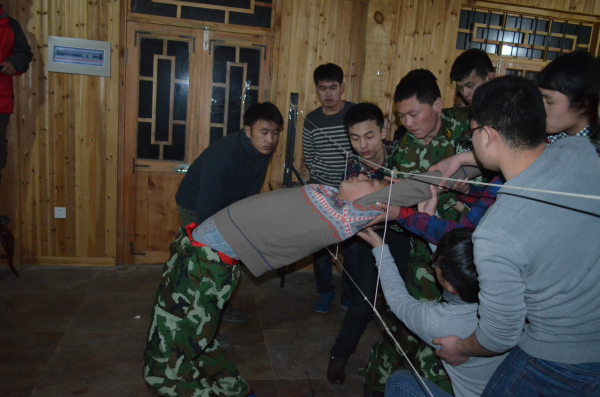 在晚上的訓練科目穿越生死線中,每一名大學生都面臨著嚴峻的考驗,不能交談,不能觸網,一人違規,全體返回重新開始。隨著激情豪邁的音樂,32名隊員組成的團隊穿越生死線開始了,寒冷的山間一線之隔卻令大家汗流浹背。穿越過程中大家失誤連連,不斷的返回、受罰、從零開始,當最后一名成員成功穿越時很多人留下了淚水,一種滿足感和成就感油然而生,每個人都從心底感謝隊友的支持與鼓勵。