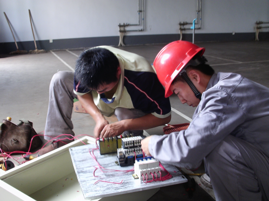 維修電工的比賽分為登桿和配電盤制作兩個項目,登桿比賽在東方陶瓷舊址進行,參賽選手們腳踏著腳扣,腰上系著保險帶,在上蒸下煮的酷熱天氣里,他們迅速登上電線桿安裝瓷瓶,然后再快速回到地面,整個流程結(jié)束,他們的衣襟已經(jīng)濕透,在他們身上看到的的是嫻熟的操作速度和日積月累的操作水平。配電盤制作的比賽在華盛熱電娛樂室進行,參賽選手們爭分奪秒,他們忘記了天氣的溫度,每根線都被整整齊齊地接到各個電器元件和端子排上。比賽分為8組進行,兩人一組共同制作一個配電盤,選手們互相配合,互相借鑒,共同學(xué)習(xí),把技術(shù)和經(jīng)驗融入集體,出色地完成了此次比賽。